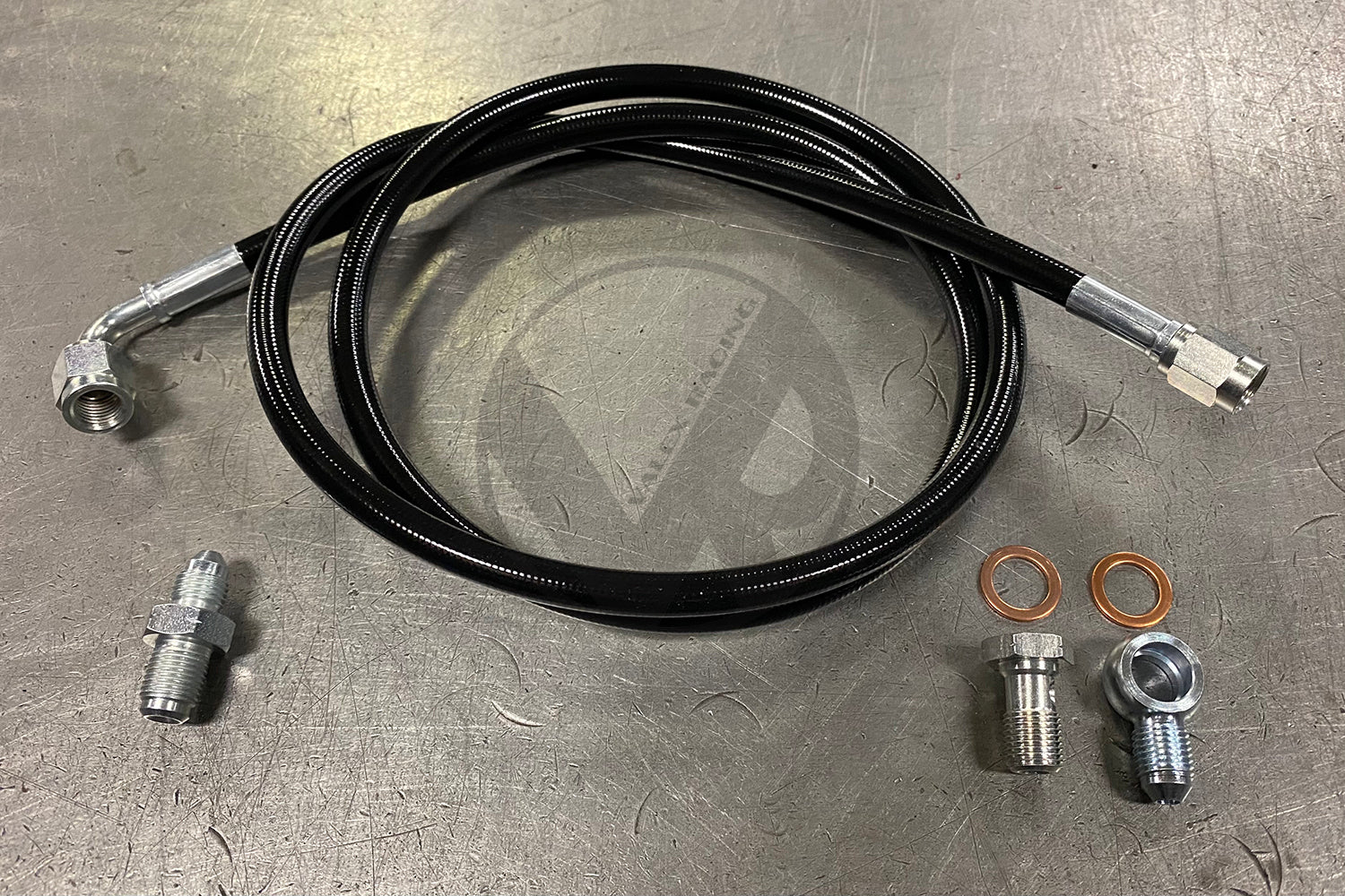 For sale is a Stainless Steel clutch line made to fit with K Series engine swaps. This line will completely replace the 3 piece hard line from the clutch master to clutch slave cylinder for that clean tucked look. Developed in house for a correct fit. Often imitated, never duplicated.