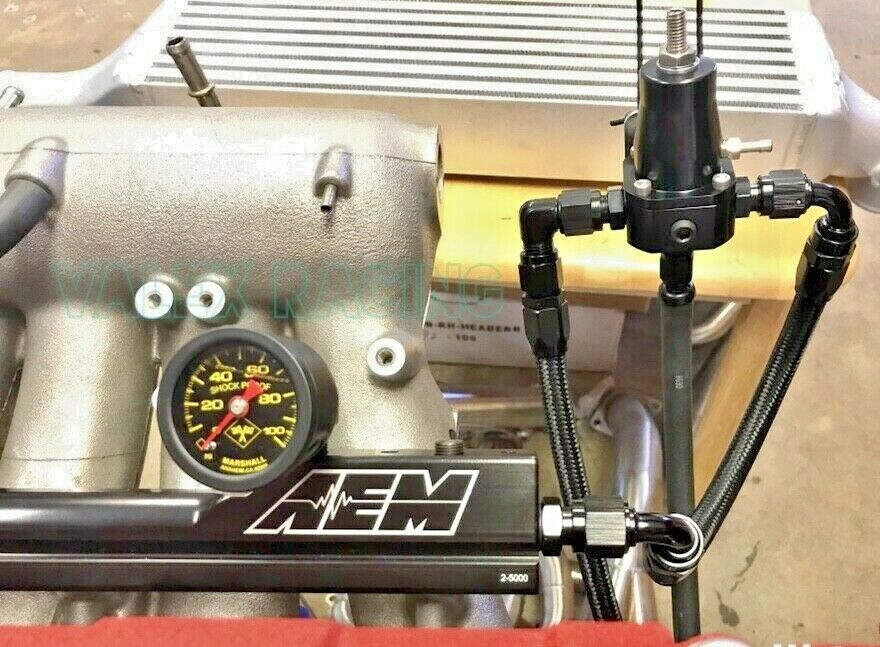 For sale is a complete B Series Honda / Acura fuel tuck system. This system features an AEM high volume fuel rail, K Tuned -6 inline fuel filter, Aeromotive style fuel pressure regulator, black braided fuel lines, all necessary fittings, marshall fuel pressure gauge, and fuel return line. This system allows you to connect the fuel feed line with a inline filter and compression fitting for a very clean engine bay. The fuel pressure regulator is designed to be mounted either at the driver side shock tower or against the fire wall. Please email with any questions.